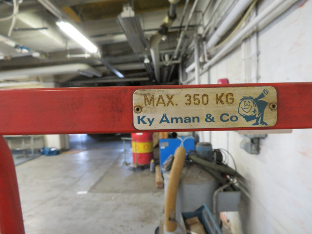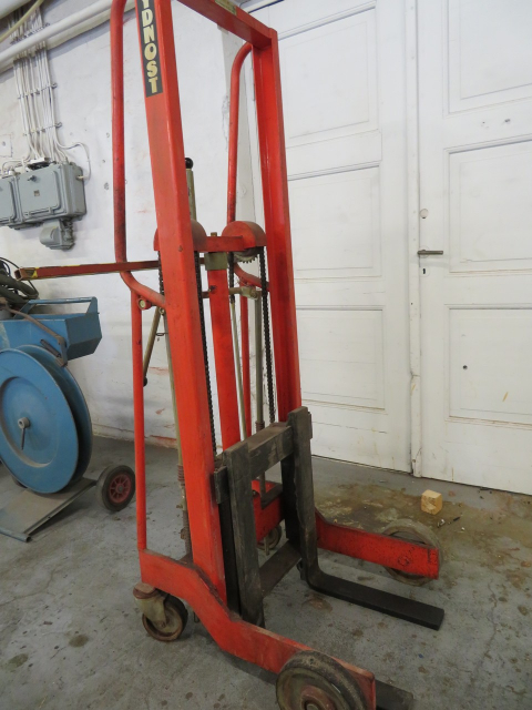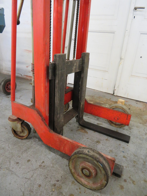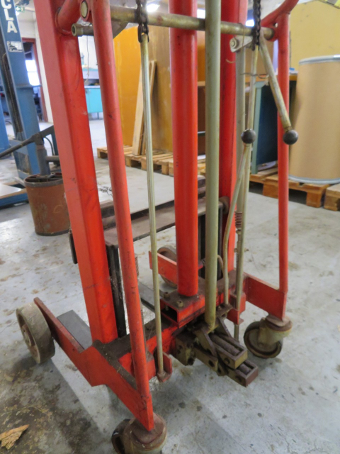 Kuvien mukainen pinontavaunu / tynnyrin nostin max 350 kg, nostokorkeus n 150 cm "Projekti, eli sylinterin tiiviste vuotaa" muuten ok laite Hinta 180,- + alv. Kohde sijaitsee Lohjan varastolla