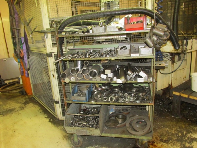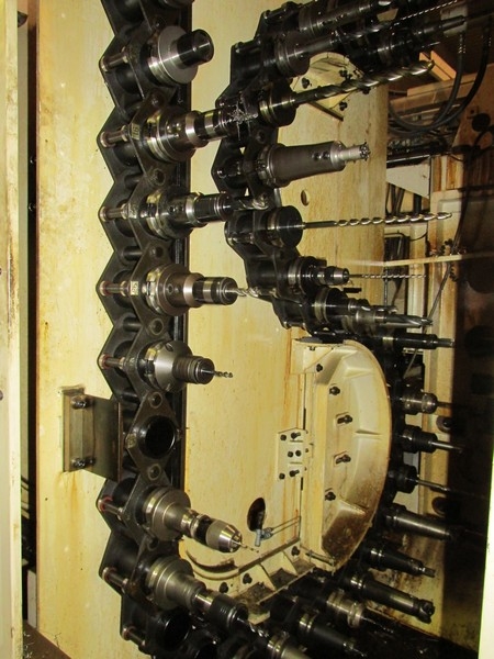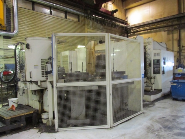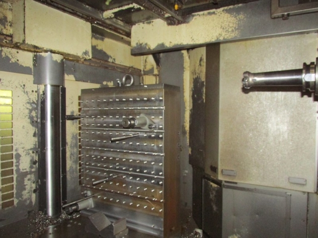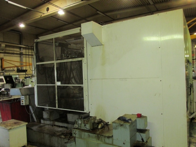 Horizontal 4-axis, 2-fold rotary pallet changer for 6 pallets 630 x 630 mm, pallet changing time approx. 8 sec., X = 1000 mm /Y = 800 mm/ / = 810 mm, indirect absolute path measuring system (encoder), B-axis with 1 °, chain magazine with 150 tools, SK-50 MAS BT, 20 kW/ 466 Nm, 50 - 5000 rpm, approx. 40 m/min., chip-to-chip approx. 5 sec., coolant unit "Mayfran Consep 2000" 50 bar two-stage, internal coolant supply 15 bar/ 12 rpm, tool breakage monitoring and tool length measurement, preheat function, chip conveyor, control cabinet cooler,including 2 pallets tables total weight approx. 25000 kg, width approx. 3760 mm, depth approx. 5400 mm, height approx. 3300 mm