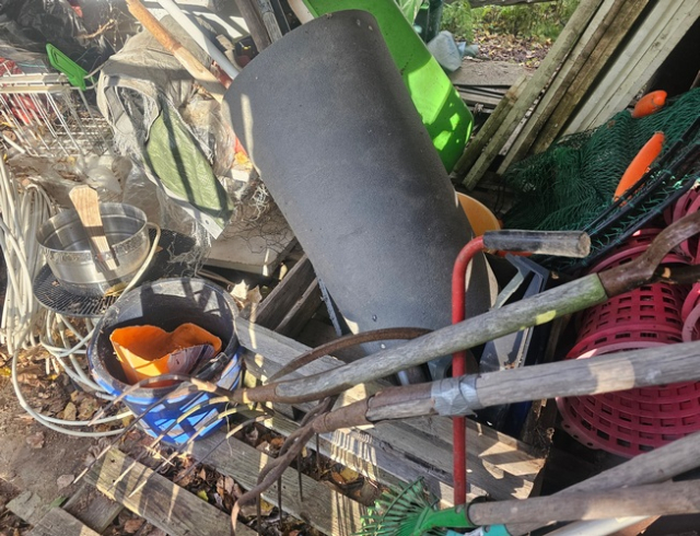 Myydään huutokaupalla kuvassa näkyvän varaston sisältö, vuokranantajan / haltijan (Kuolinpesä) lukuun.