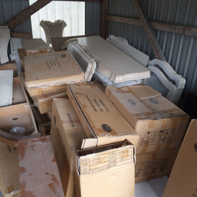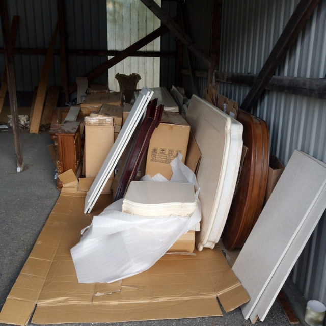 Myydään huutokaupalla kuvassa näkyvän varaston sisältö, vuokranantajan / haltijan lukuun.