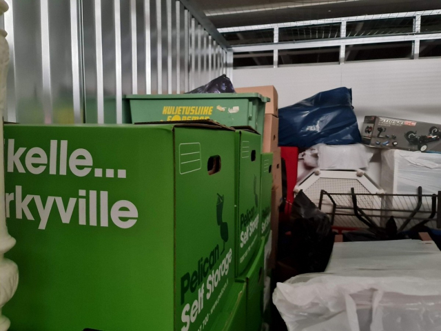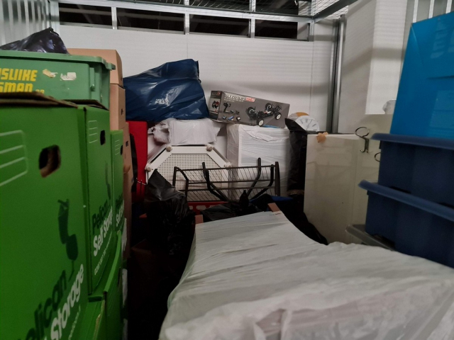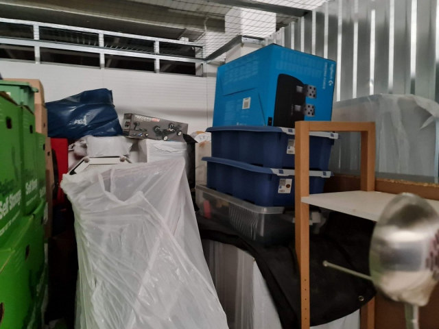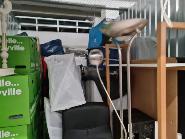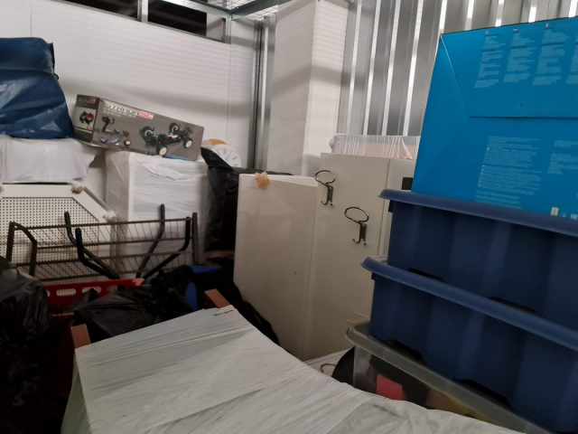 Myydään huutokaupalla kuvassa näkyvän varaston sisältö, vuokranantajan / haltijan lukuun.