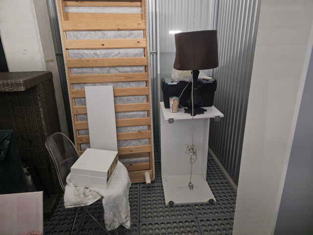 Myydään huutokaupalla kuvassa näkyvän varaston sisältö, vuokranantajan / haltijan lukuun.