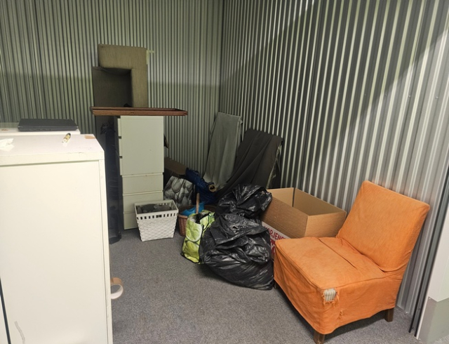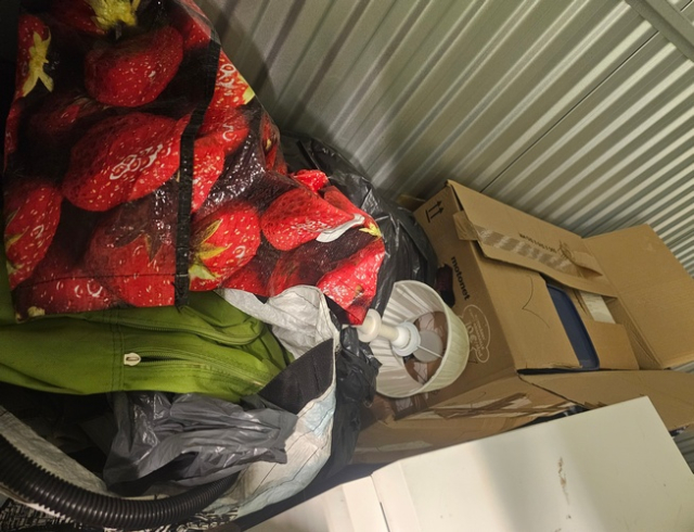 Myydään huutokaupalla kuvassa näkyvän varaston sisältö, vuokranantajan / haltijan lukuun.
