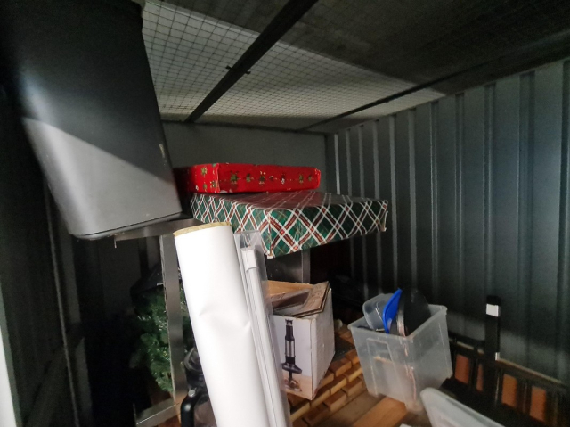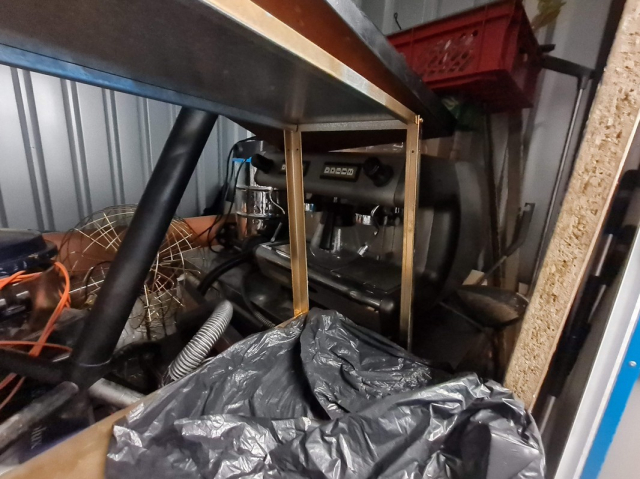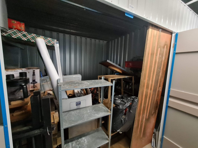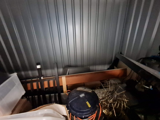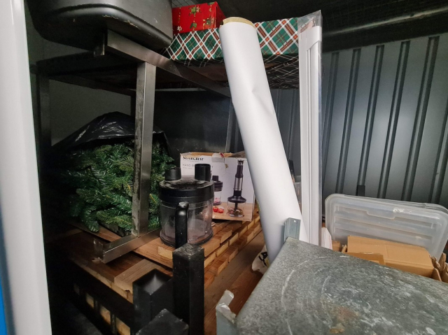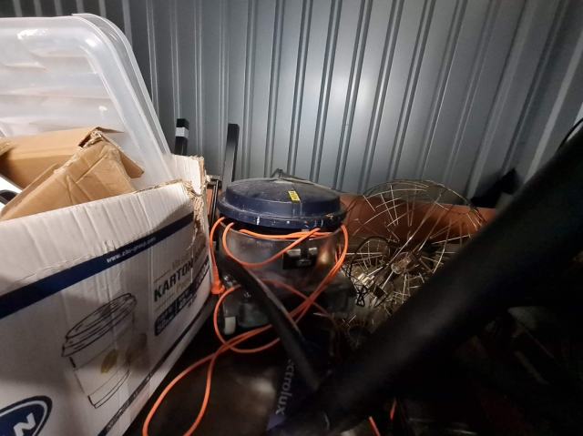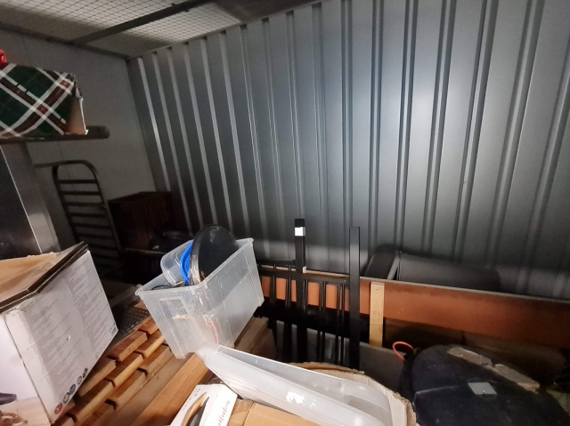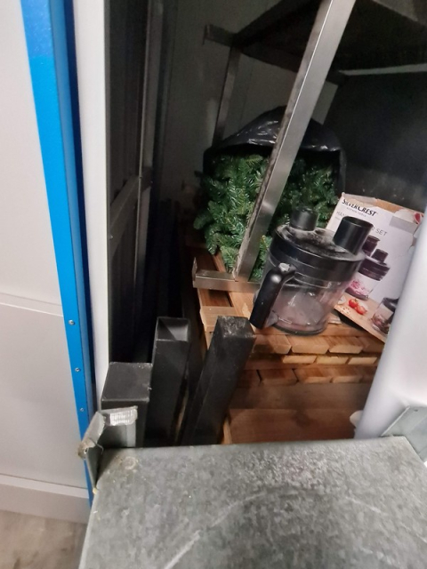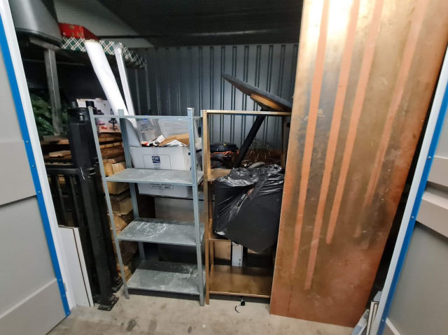 Myydään huutokaupalla kuvassa näkyvän varaston sisältö, vuokranantajan / haltijan lukuun.