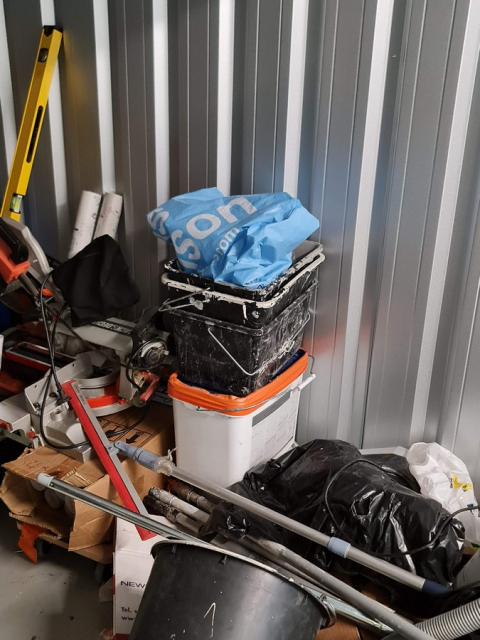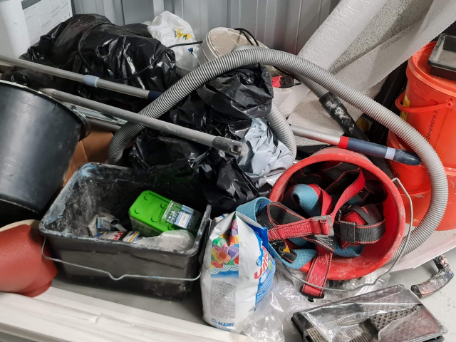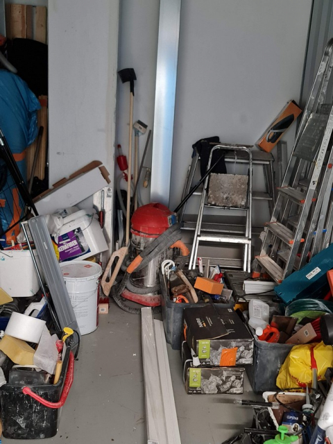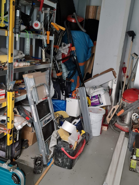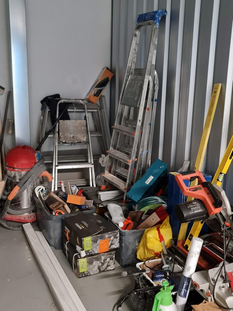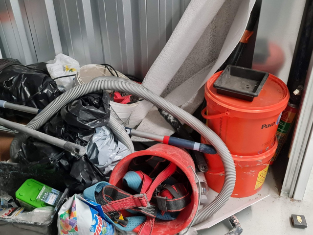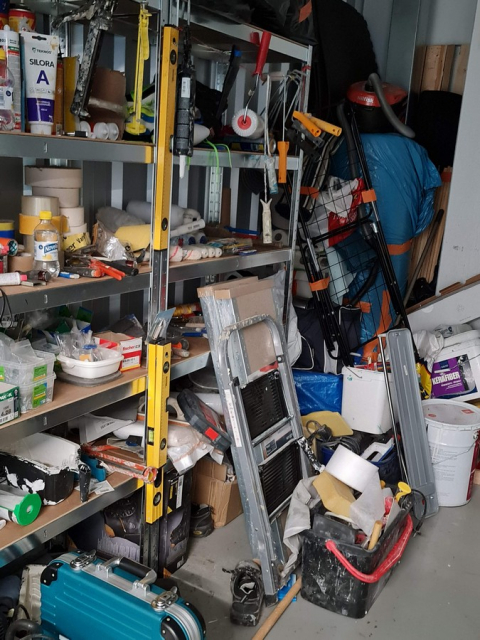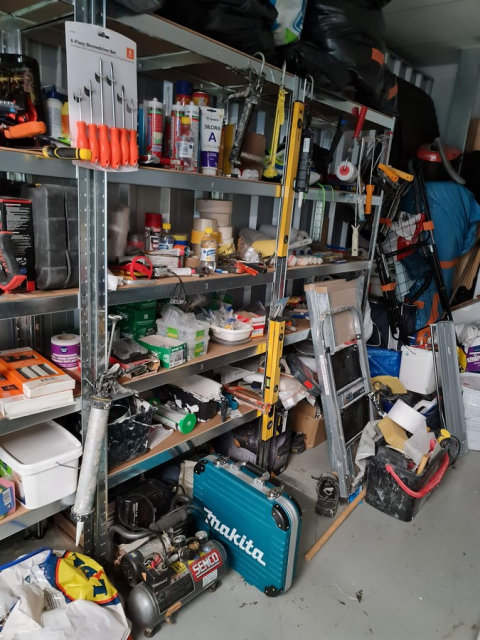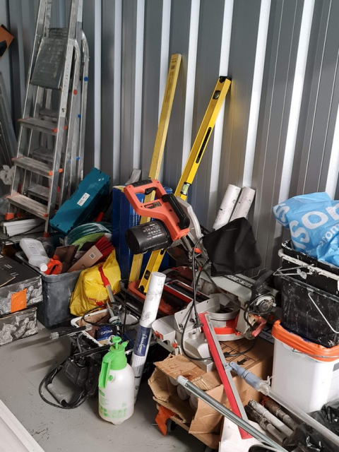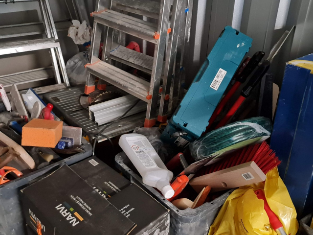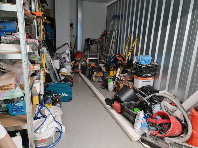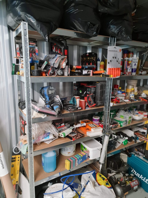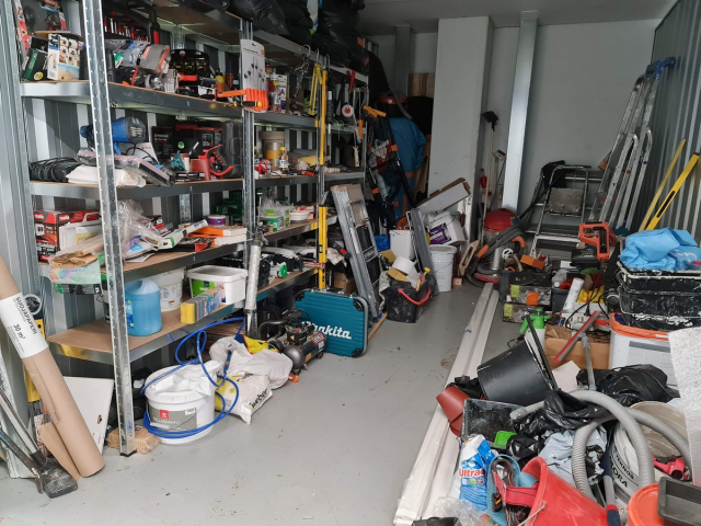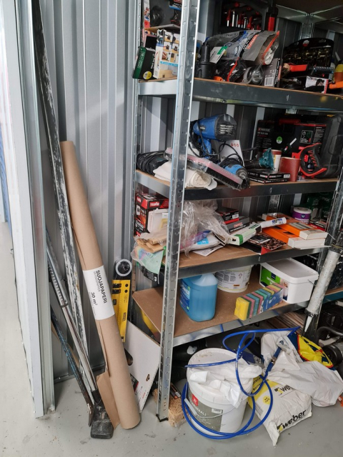 Myydään huutokaupalla kuvassa näkyvän varaston sisältö, vuokranantajan / haltijan lukuun.