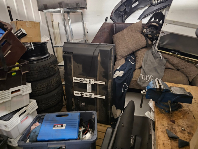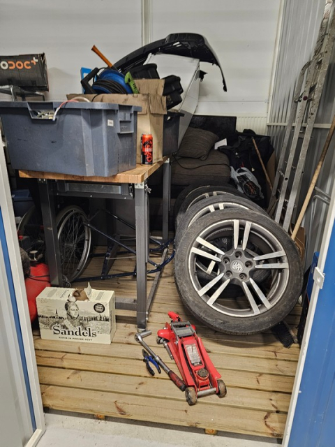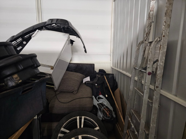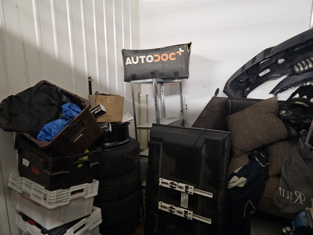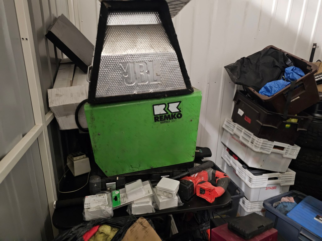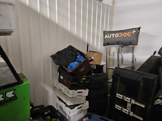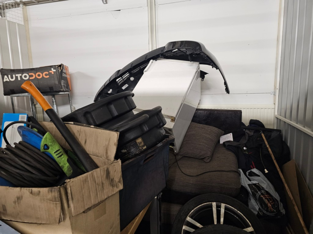 Myydään huutokaupalla kuvassa näkyvän varaston sisältö, vuokranantajan / haltijan lukuun.