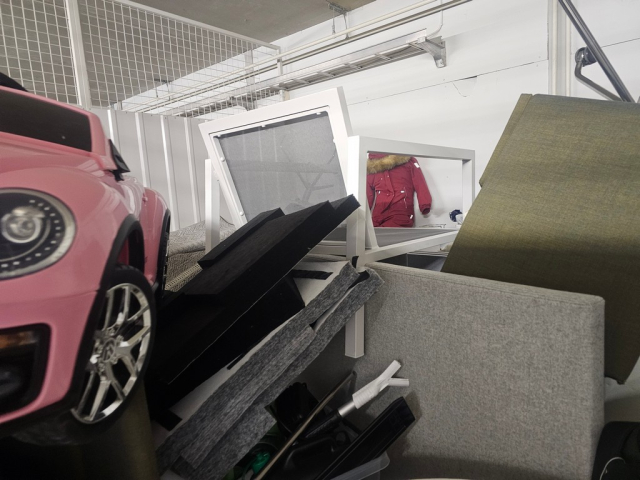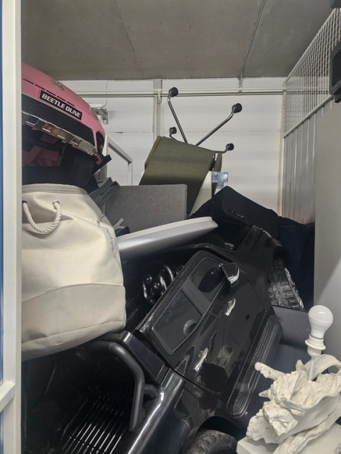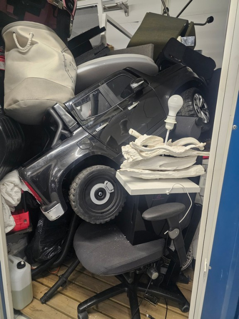 Myydään huutokaupalla kuvassa näkyvän varaston sisältö, vuokranantajan / haltijan lukuun.