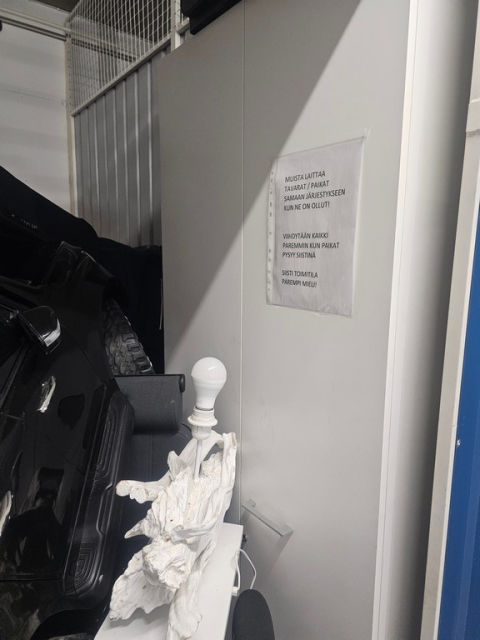 Mitään videolla tai tekstissä esitettyä näkemystä kohteesta ei tule pitää ammattimaisena lausuntona tavaroista, niiden käyttötarkoituksesta,kunnosta tai laadusta, ne ovat puhtaasti toimeksisaaneen edustajan esittämiä, henkilökohtaisia näkemyksiä kohteesta. Jättämällä tarjouksen kohteesta ilmaiset, että olet lukenut ja hyväksynyt nämä huutokaupan säännöt ja ehdot, jonka perusteella huutokauppaa käydään. Mikäli et ole valmis ehtoihin ja sääntöihin, ole ystävällinen ja älä jätä tarjousta. Kohde myydään näiden toimeksisaaneen ottamien ja tässä ilmoituksessa esitettyjen kuvien ja mahdollisen videon perusteella, näyttöä tai muuta esittelyä kohteeseen ei järjestetä. HUOMIOI !!! että, Ostaja velvoitetaan tyhjentämään kaikki varastossa oleva irtain, eli vuokravaraston tulee olla noudon jälkeen uudelleen vuokrattavassa kunnossa.Kaikki varastossa olevat tavarat tuolee poistaa varastoijan tiloista, varastoija ei tarjoa jäte-astioita/palvelua. Kohde myydään laillisella oikeudella joka vuokranantajalla/haltijalla on kohteeseen. Vain ostajan itsensä järjestämä nouto tulee kyseeseen, toimeksiantaja tai huutokauppalaitos ei järjestä kohteen tavaroille kuljetuspalvelua. Mikäli varastosta löytyy alkoholijuomia, aseita, lääkkeitä ym. luvan varasita tai laitonta tavaraa,on ne lain niin määrätessä luovutettava viranomaiselle tai tuhottava esim. poliisin valvonnassa. Varastosta mahdollisesti löytyvät, kolmannelta osapuolelta vuokratut esim. lainalaatikot, -välineet ym. eivät kuulu kauppaan. Varastosta mahdollisesti olevat asiakkaan henkilökohtaiset valokuvat, kirjeet ja muut asia- ja arvopaperit velvoitetaan luovuttamaan varaston pitäjälle/haltijalle tyhjennyksen yhteydessä. Myyjä ei vastaa mistään, varastosta myytyihin tavaroihin, mahdollisesti kohdistuvista, kolmansien osapuolien oikeuksista, vaatimuksista tai velvotteista.