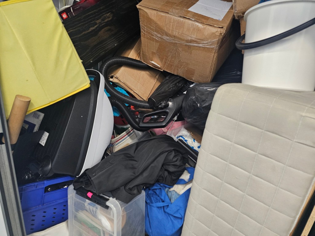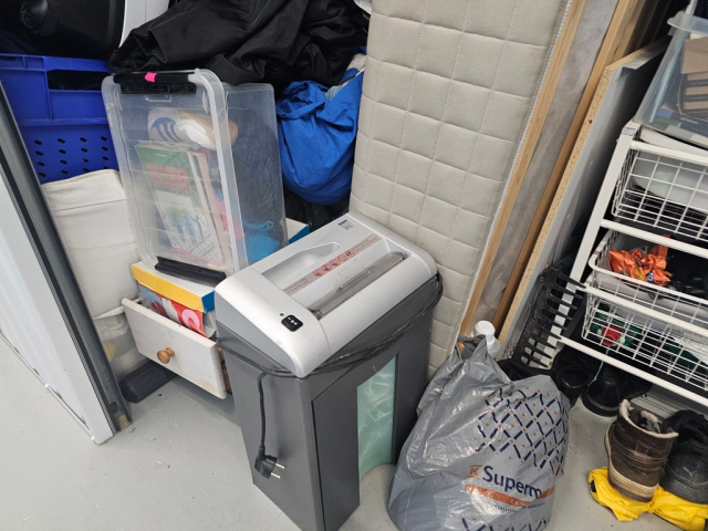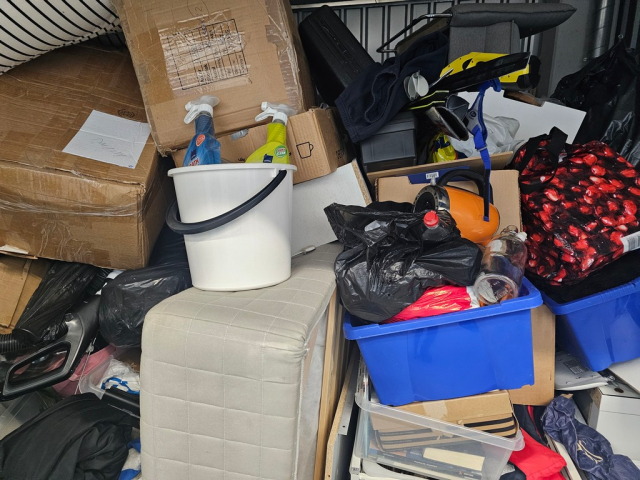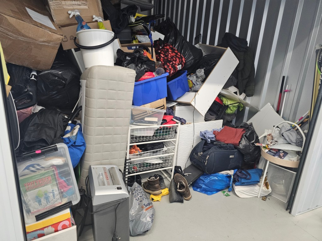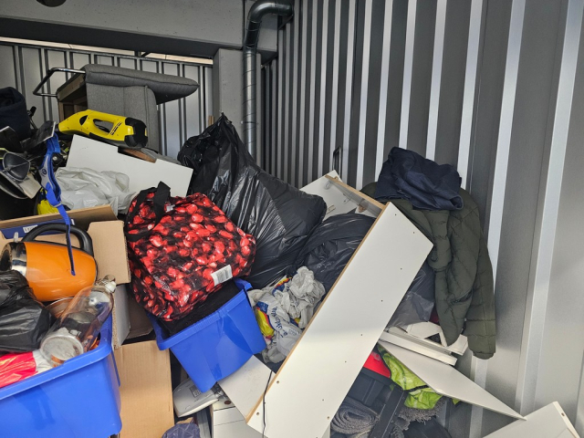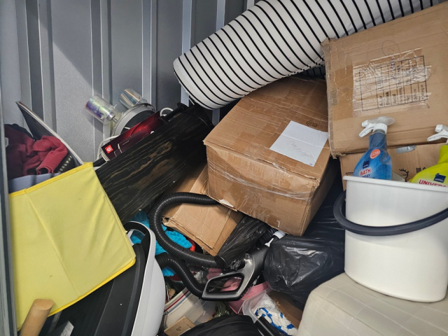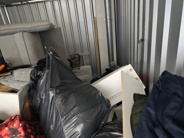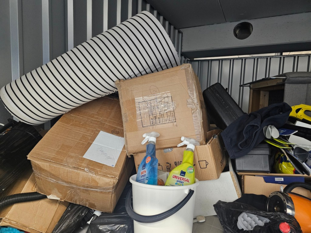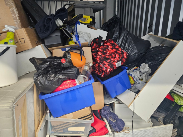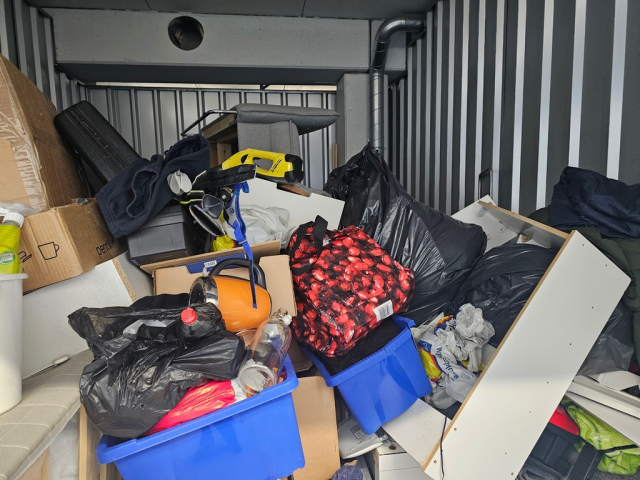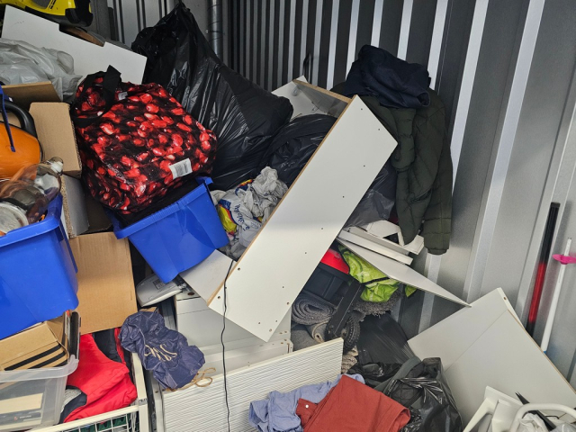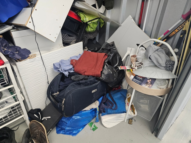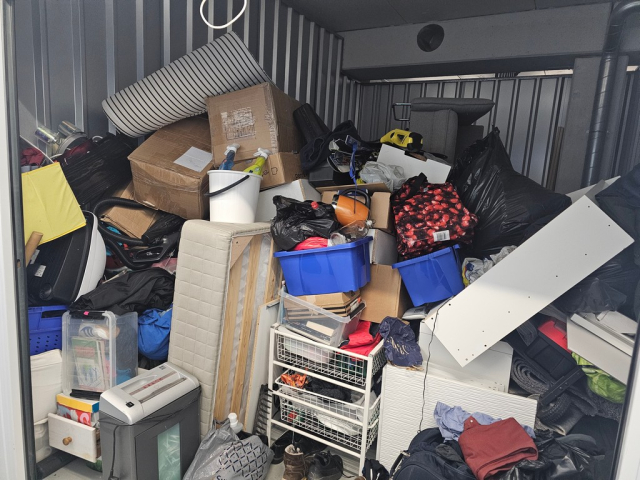 Myydään huutokaupalla kuvassa näkyvän varaston sisältö, vuokranantajan / haltijan lukuun.