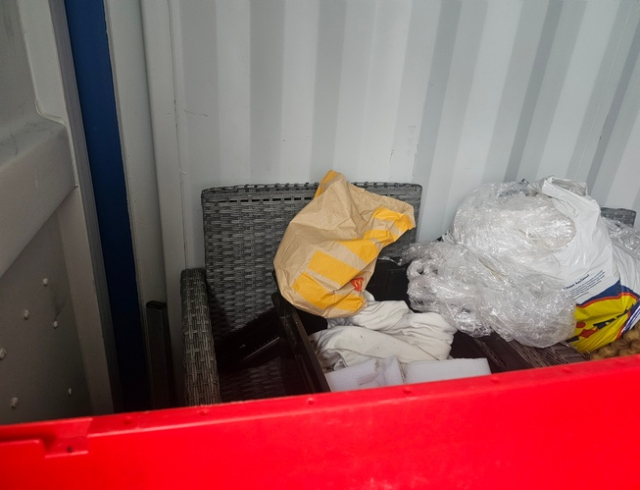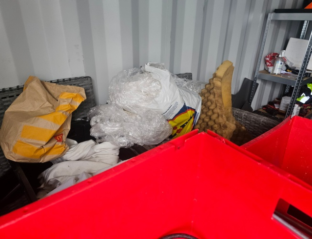 Myydään huutokaupalla kuvassa näkyvän varaston sisältö, vuokranantajan / haltijan lukuun.