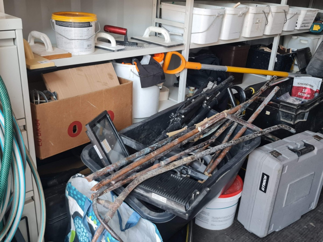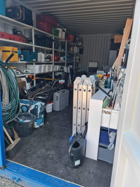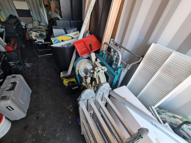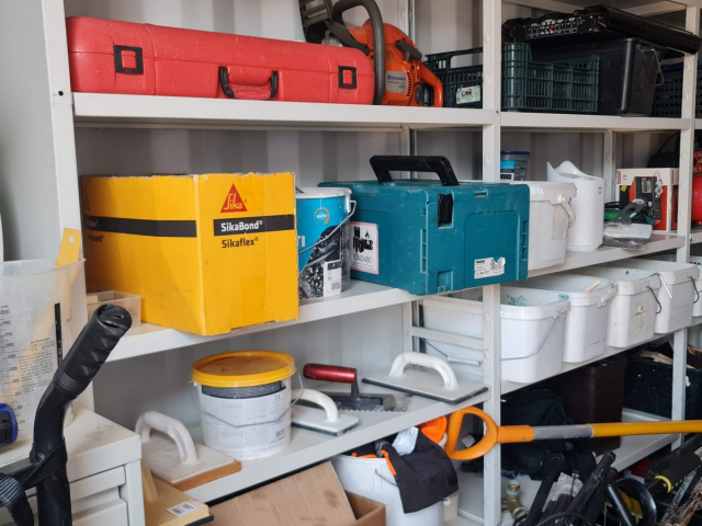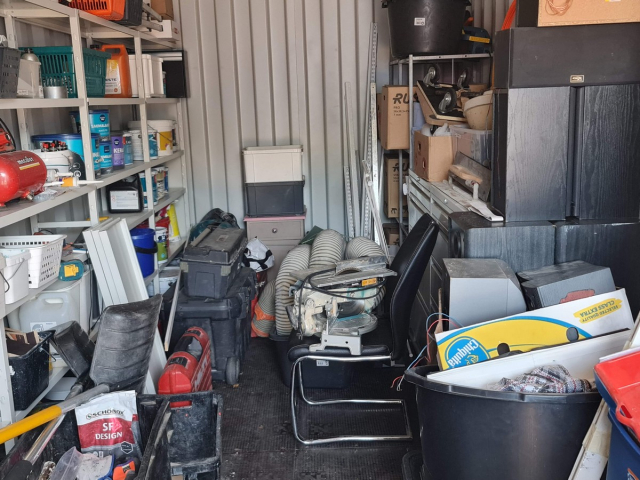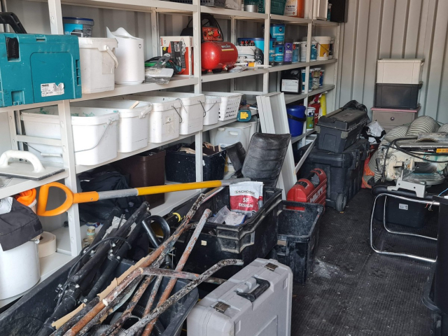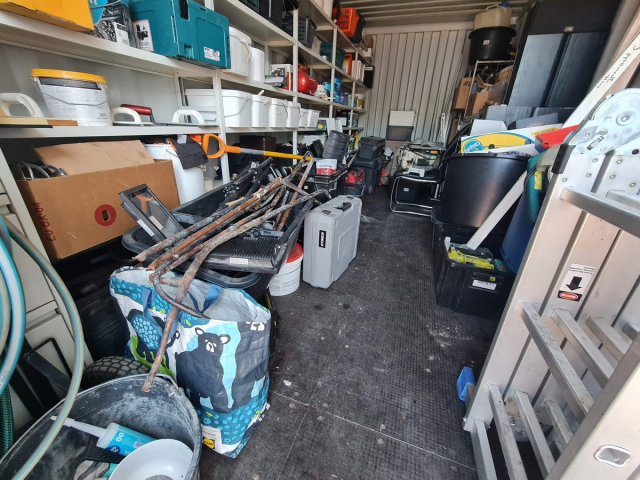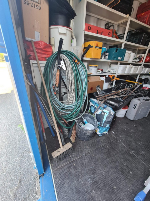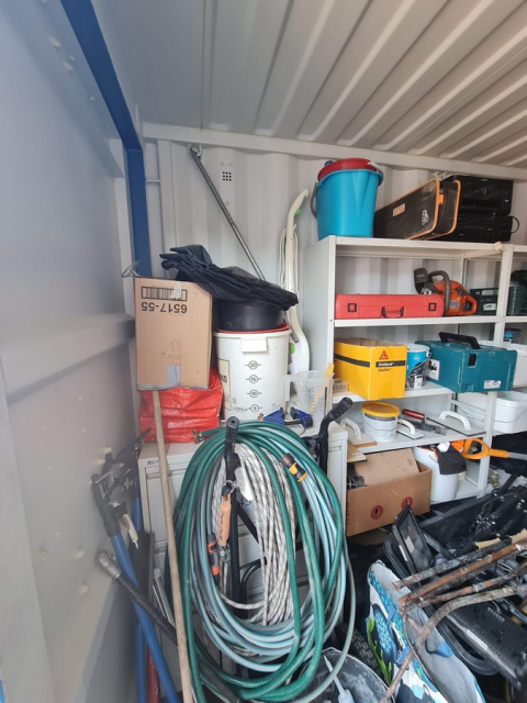 Myydään huutokaupalla kuvassa näkyvän varaston sisältö, vuokranantajan / haltijan lukuun.