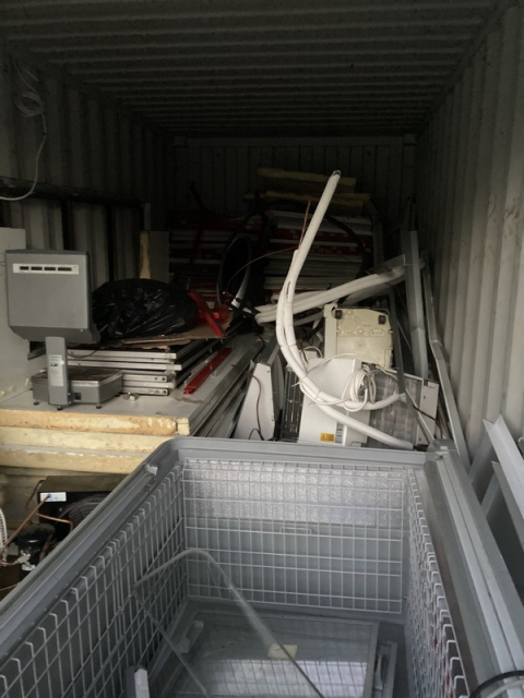 Myydään huutokaupalla kuvassa näkyvän varaston sisältö, vuokranantajan / haltijan lukuun.