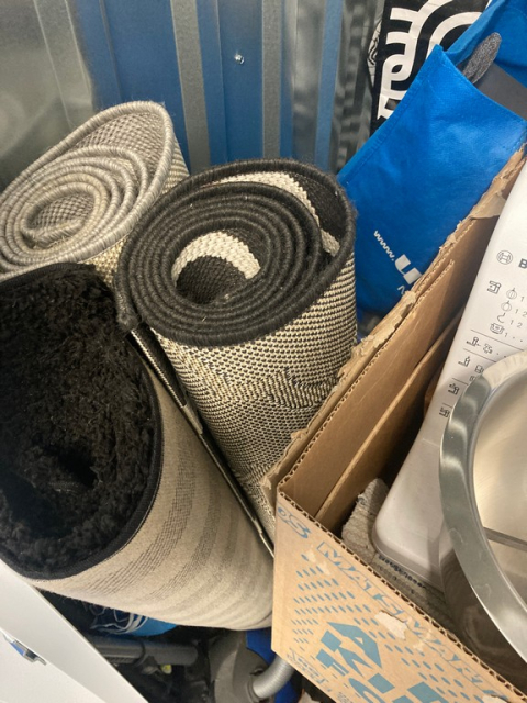 Myydään huutokaupalla kuvassa näkyvän varaston sisältö, vuokranantajan / haltijan lukuun.
