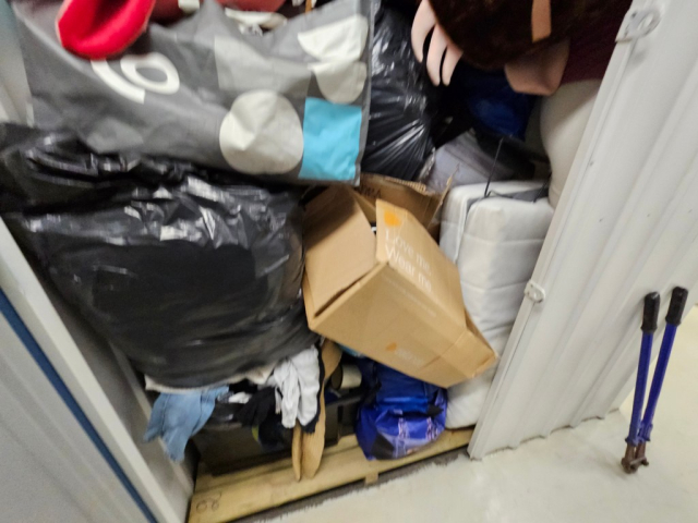 Myydään huutokaupalla kuvassa näkyvän varaston sisältö, vuokranantajan / haltijan lukuun.