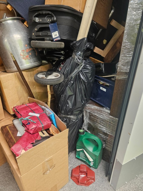 Myydään huutokaupalla kuvassa näkyvän varaston sisältö, vuokranantajan / haltijan lukuun.