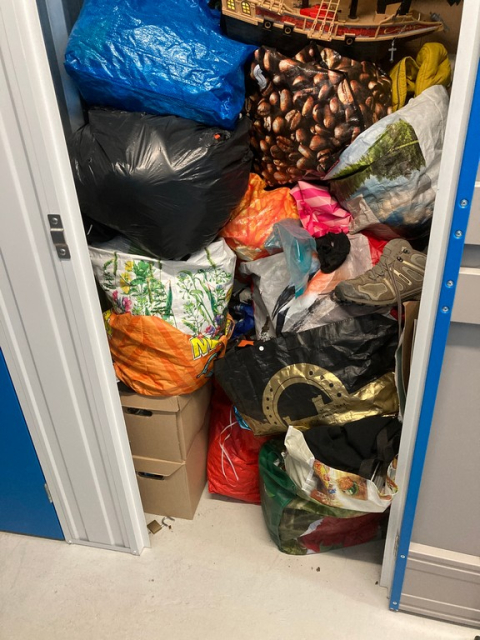 Myydään huutokaupalla kuvassa näkyvän varaston sisältö, vuokranantajan / haltijan lukuun.