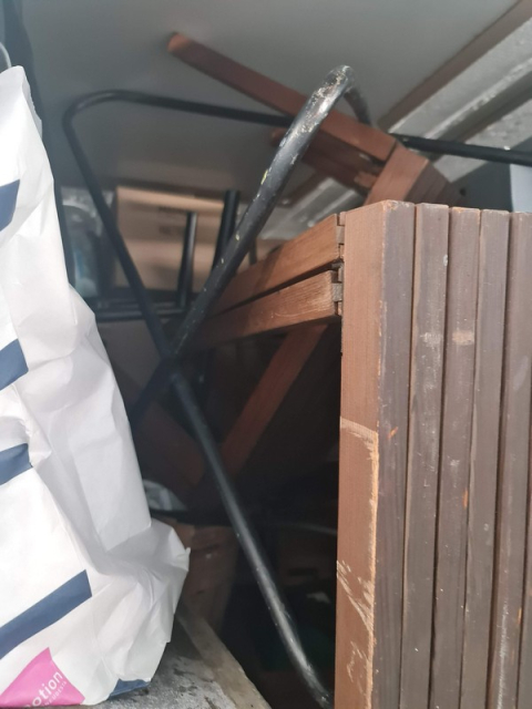 Myydään huutokaupalla kuvassa näkyvän varaston sisältö, vuokranantajan / haltijan lukuun.