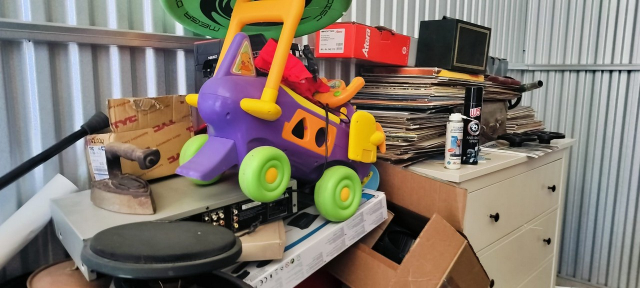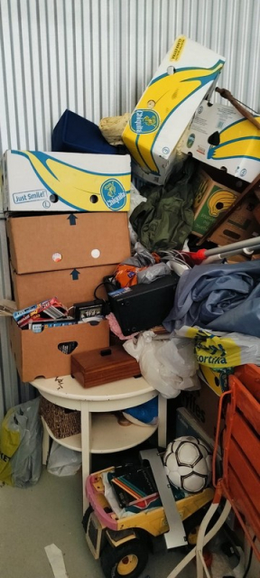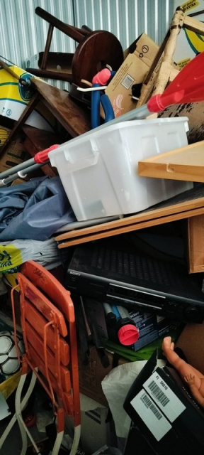Myydään huutokaupalla kuvassa näkyvän varaston sisältö, vuokranantajan / haltijan lukuun.