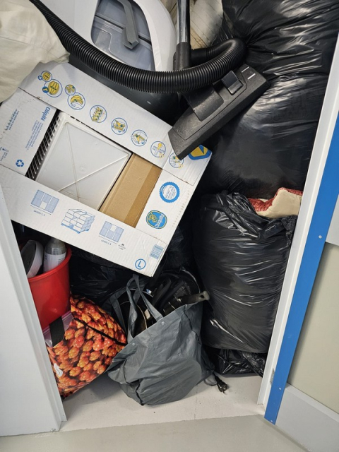 Myydään huutokaupalla kuvassa näkyvän varaston sisältö, vuokranantajan / haltijan lukuun.