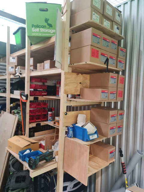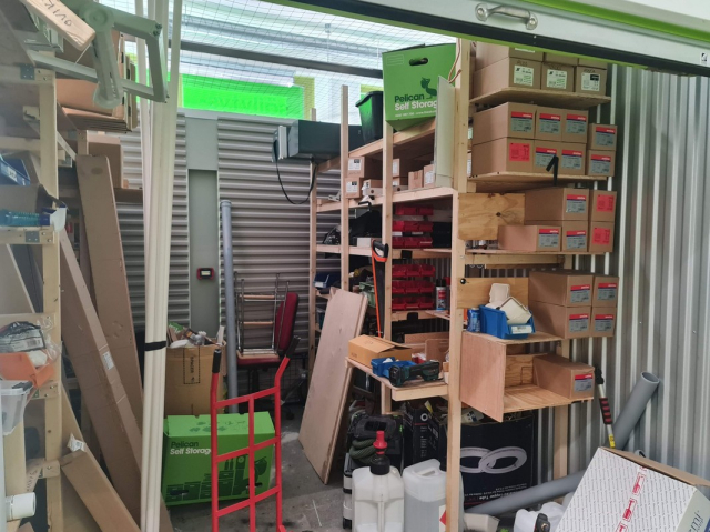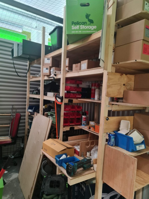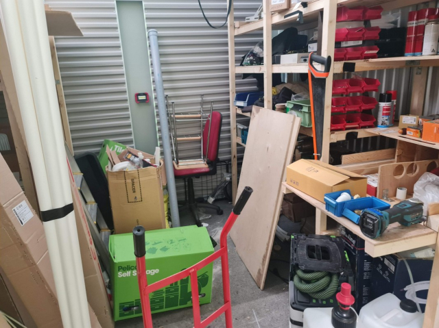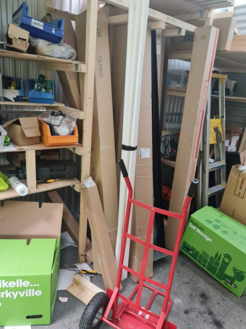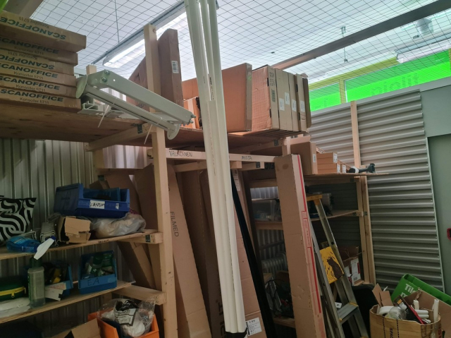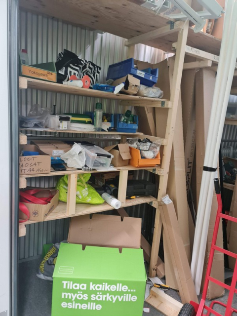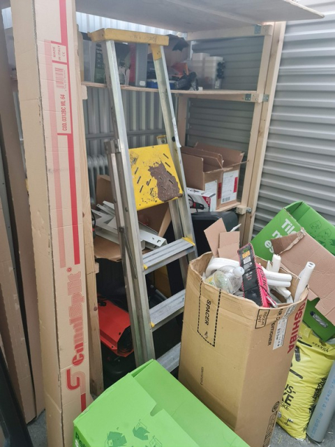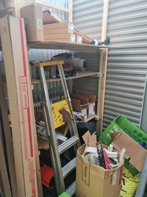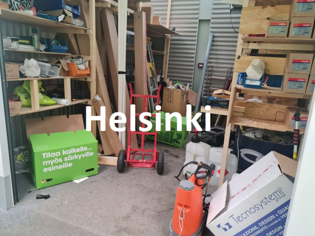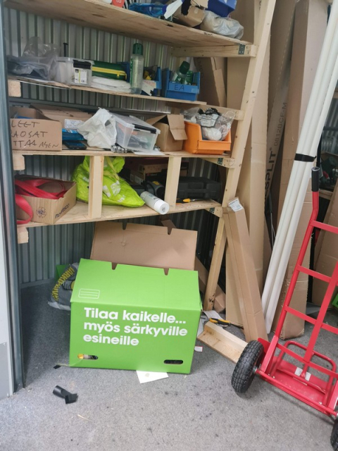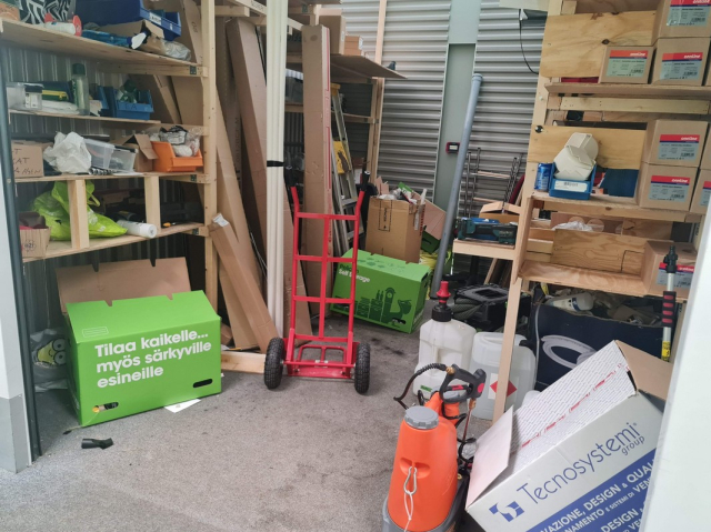 Myydään huutokaupalla kuvassa näkyvän varaston sisältö, vuokranantajan / haltijan lukuun.