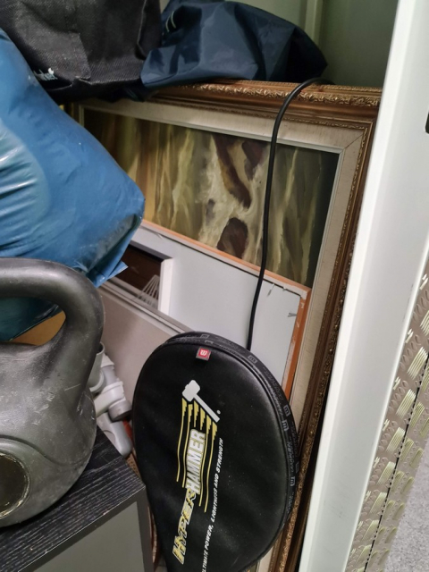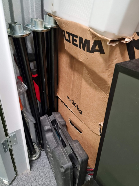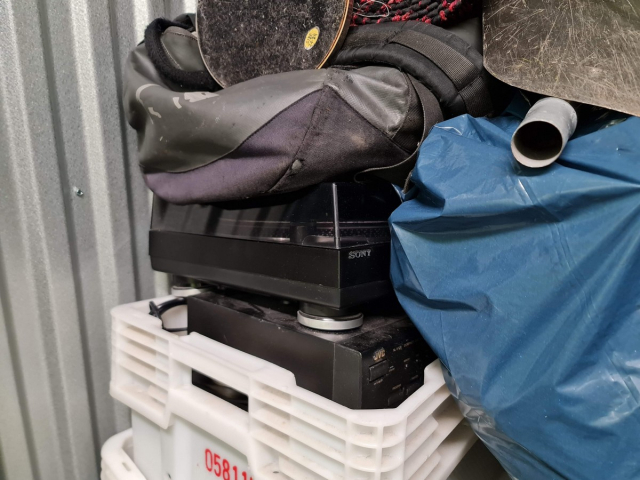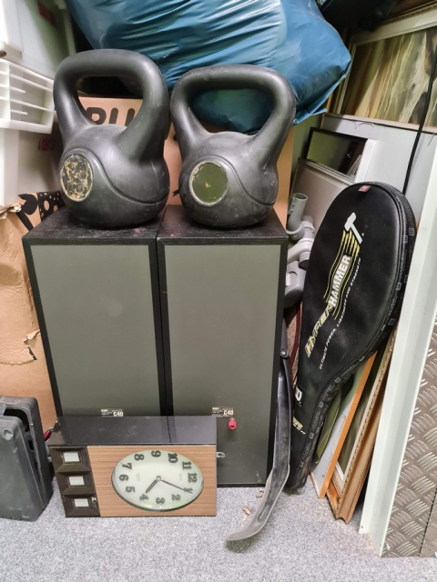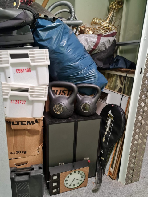Myydään huutokaupalla kuvassa näkyvän varaston sisältö, vuokranantajan / haltijan lukuun.
