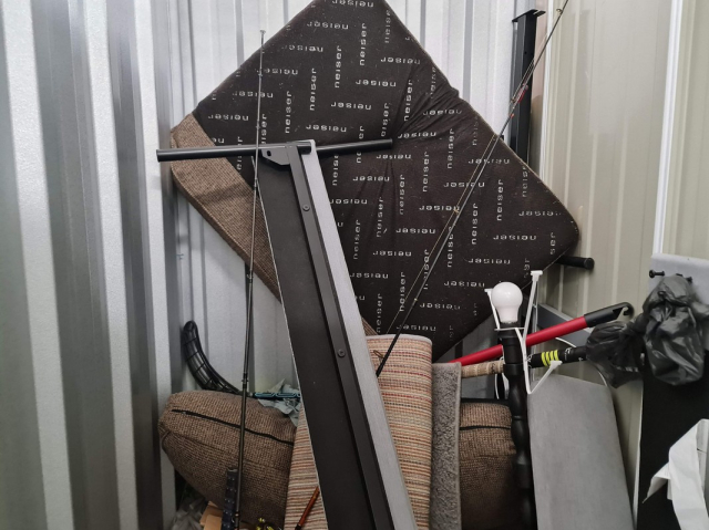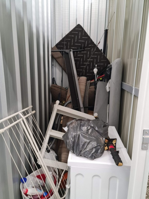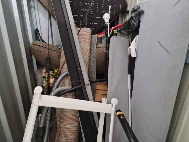 Myydään huutokaupalla kuvassa näkyvän varaston sisältö, vuokranantajan / haltijan lukuun.