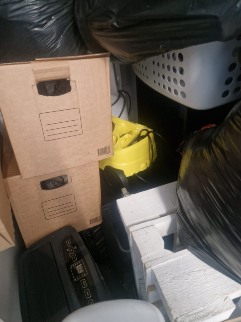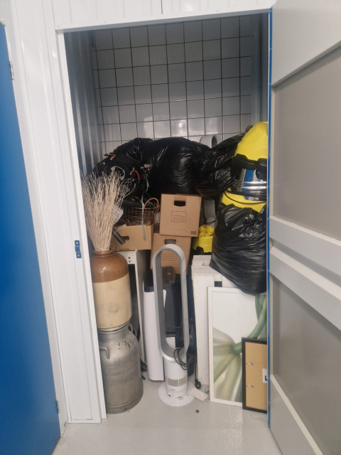 Myydään huutokaupalla kuvassa näkyvän varaston sisältö, vuokranantajan / haltijan lukuun.