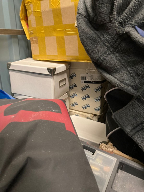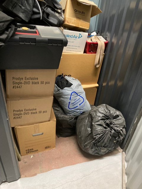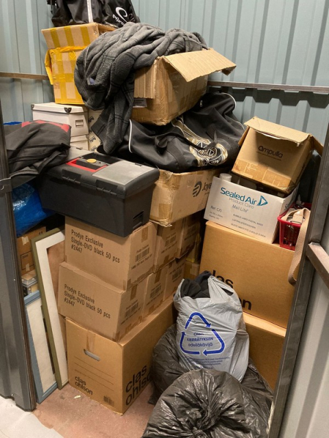 Myydään huutokaupalla kuvassa näkyvän varaston sisältö, vuokranantajan / haltijan lukuun.