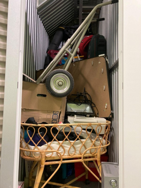 Myydään huutokaupalla kuvassa näkyvän varaston sisältö, vuokranantajan / haltijan lukuun.