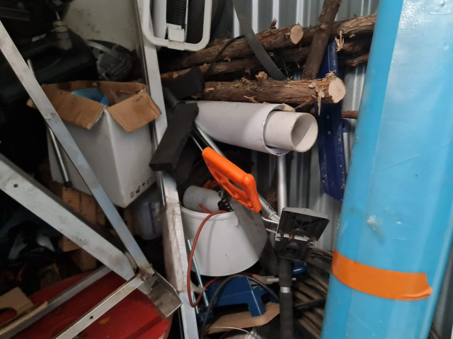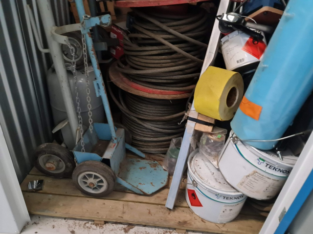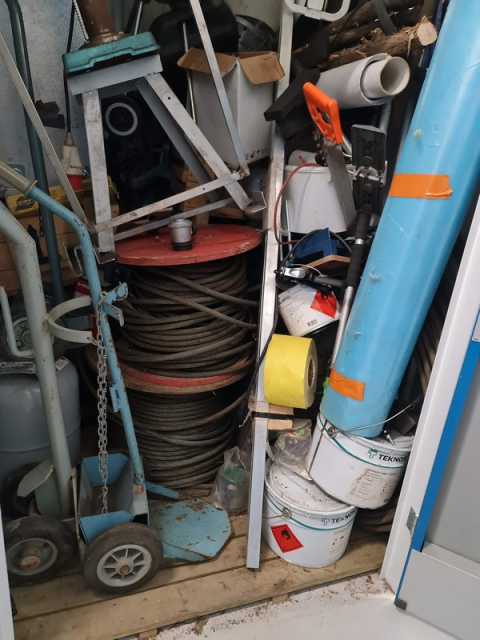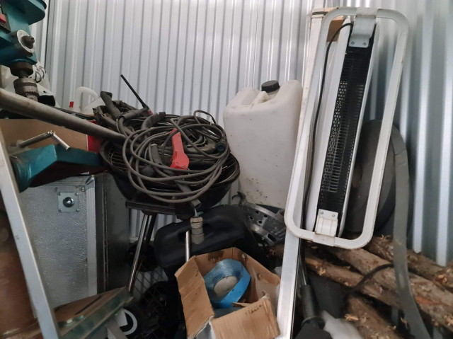 Myydään huutokaupalla kuvassa näkyvän varaston sisältö, vuokranantajan / haltijan lukuun.