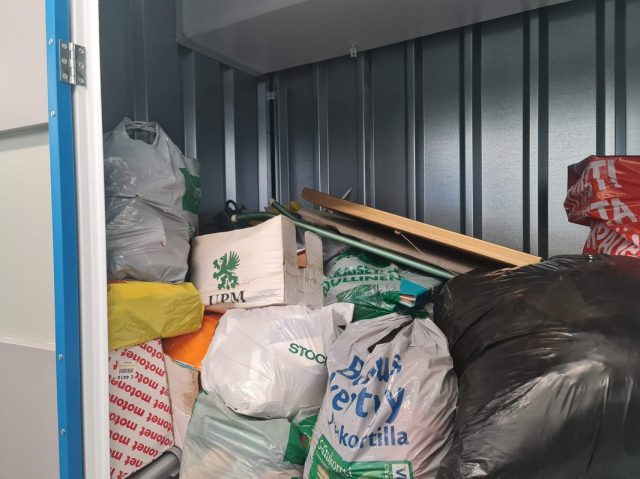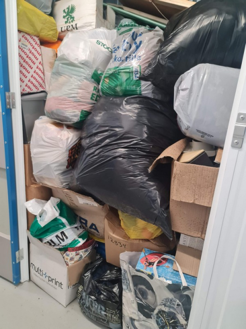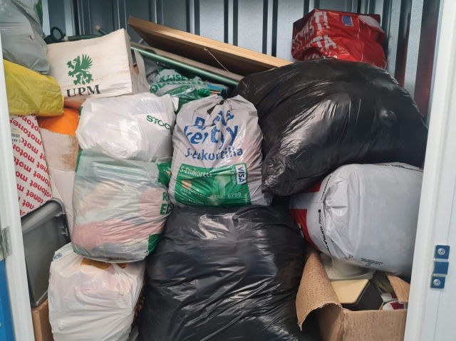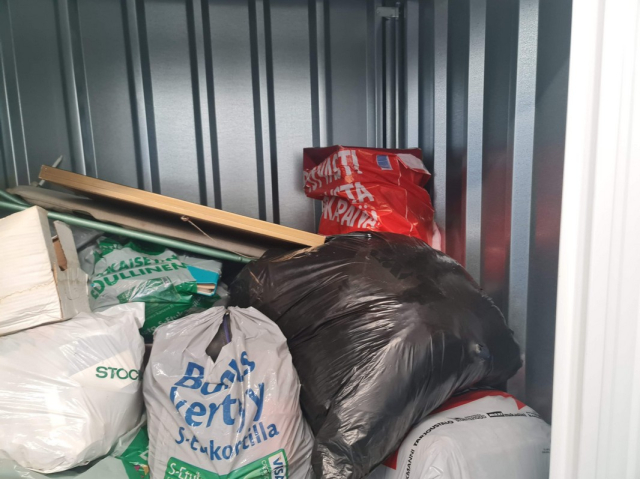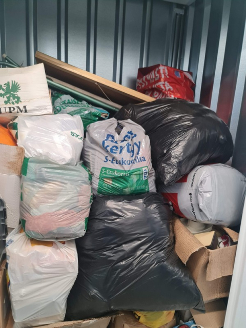 Myydään huutokaupalla kuvassa näkyvän varaston sisältö, vuokranantajan / haltijan lukuun.