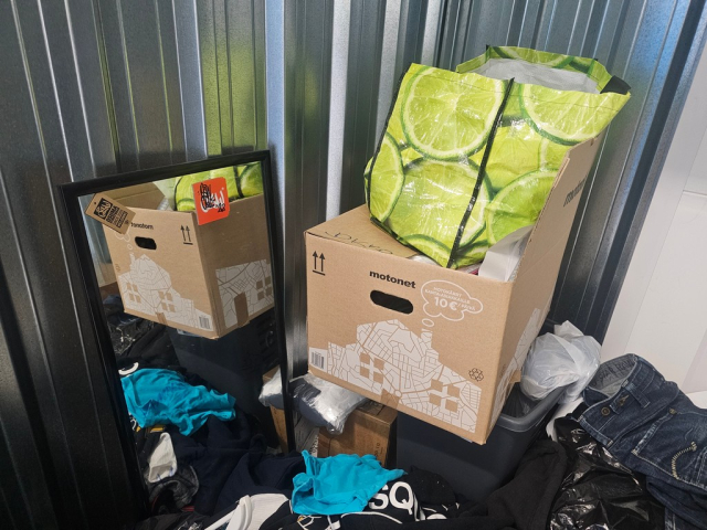 Myydään huutokaupalla kuvassa näkyvän varaston sisältö, vuokranantajan / haltijan lukuun.