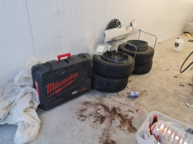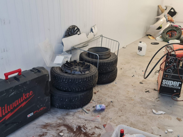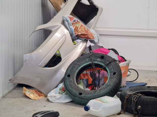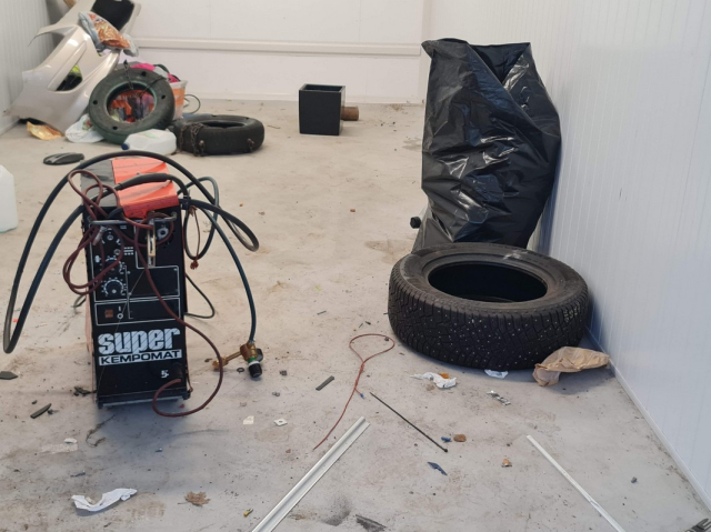 Myydään huutokaupalla kuvassa näkyvän varaston sisältö, vuokranantajan / haltijan lukuun.