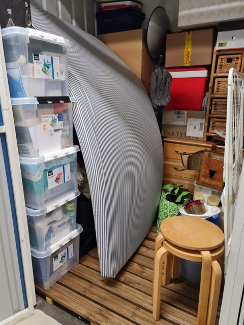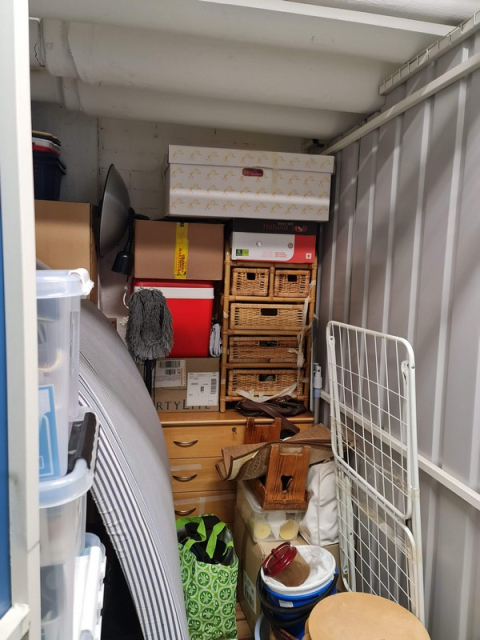 Myydään huutokaupalla kuvassa näkyvän varaston sisältö, vuokranantajan / haltijan lukuun.