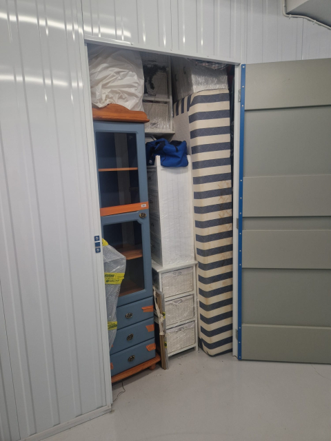 Myydään huutokaupalla kuvassa näkyvän varaston sisältö, vuokranantajan / haltijan lukuun.