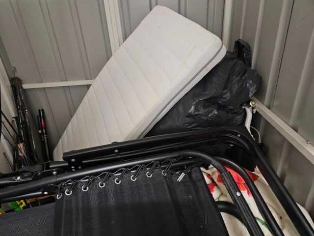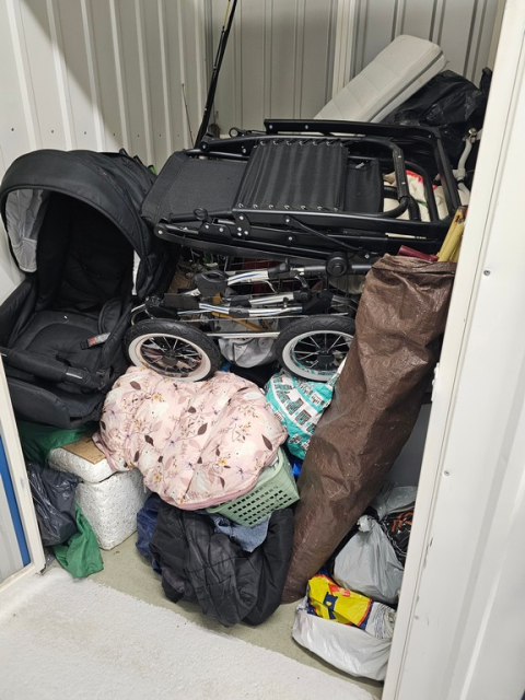 Myydään huutokaupalla kuvassa näkyvän varaston sisältö, vuokranantajan / haltijan lukuun.