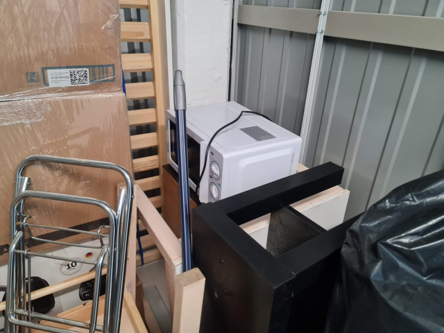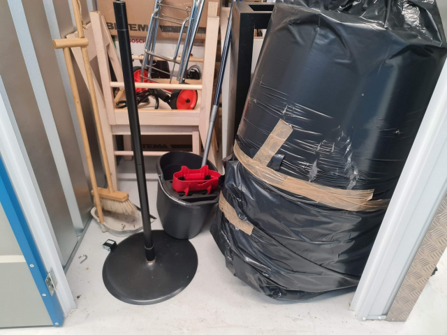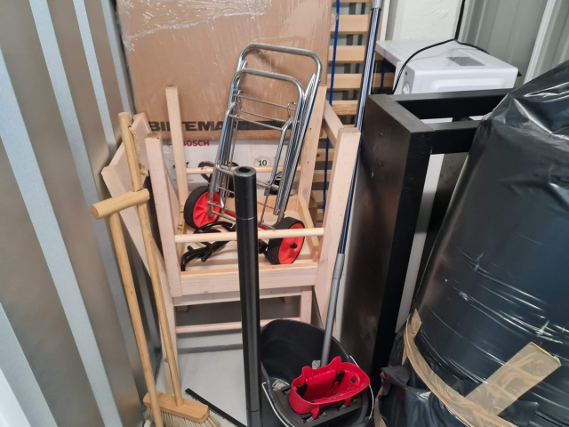 Myydään huutokaupalla kuvassa näkyvän varaston sisältö, vuokranantajan / haltijan lukuun.