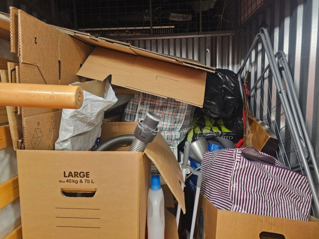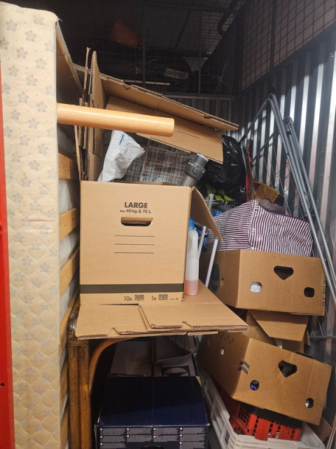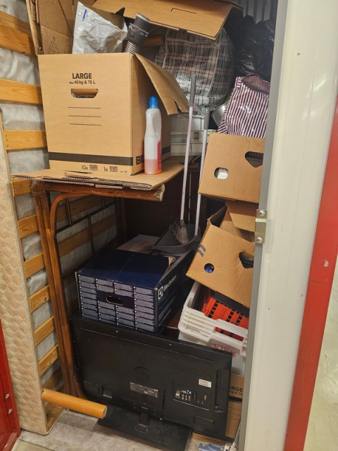 Myydään huutokaupalla kuvassa näkyvän varaston sisältö, vuokranantajan / haltijan lukuun.