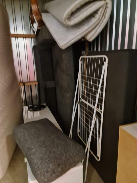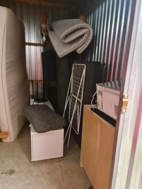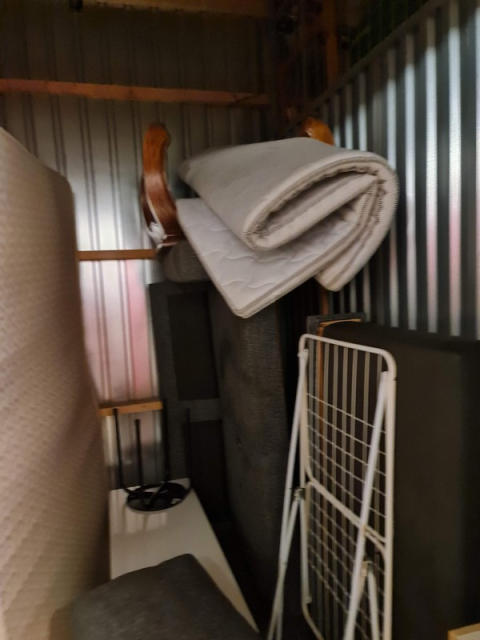 Myydään huutokaupalla kuvassa näkyvän varaston sisältö, vuokranantajan / haltijan lukuun.