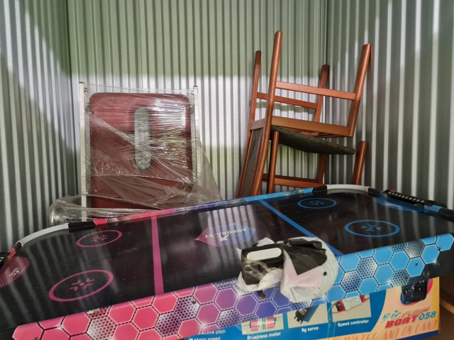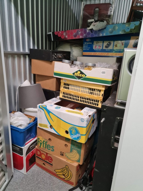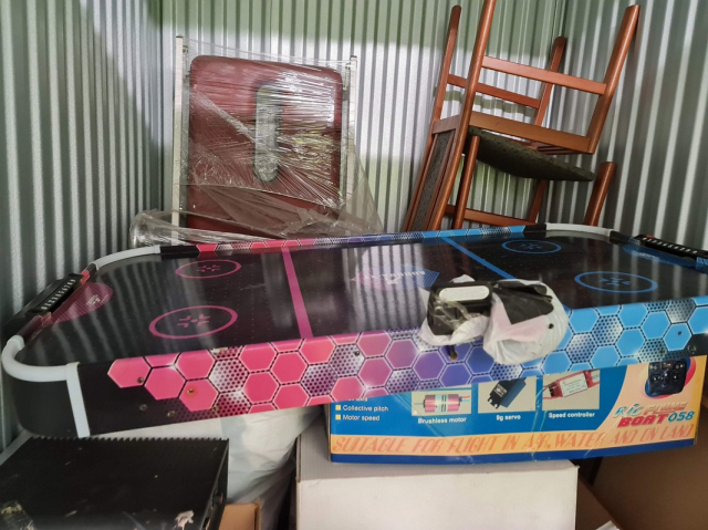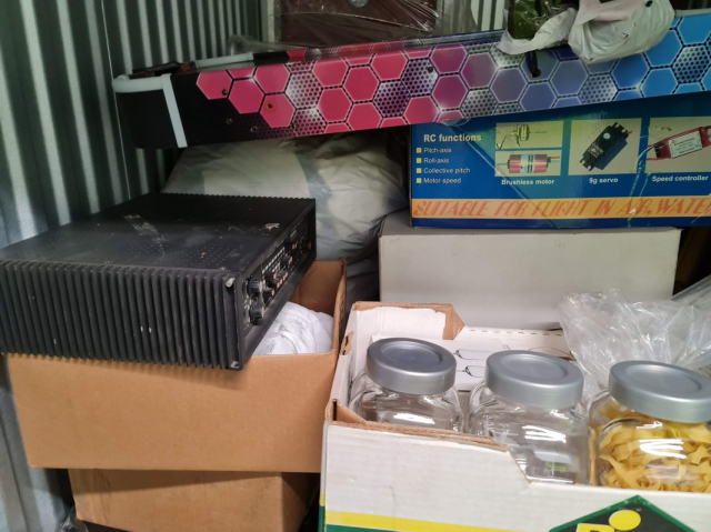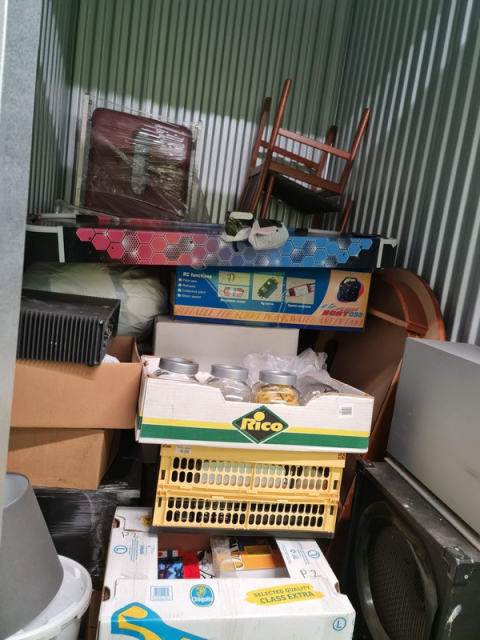Myydään huutokaupalla kuvassa näkyvän varaston sisältö, vuokranantajan / haltijan lukuun.
