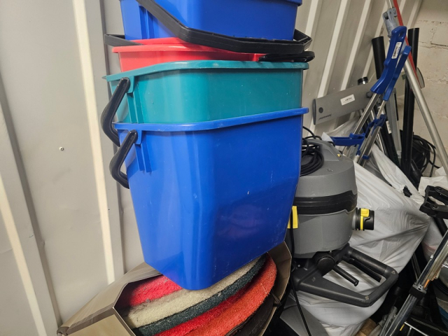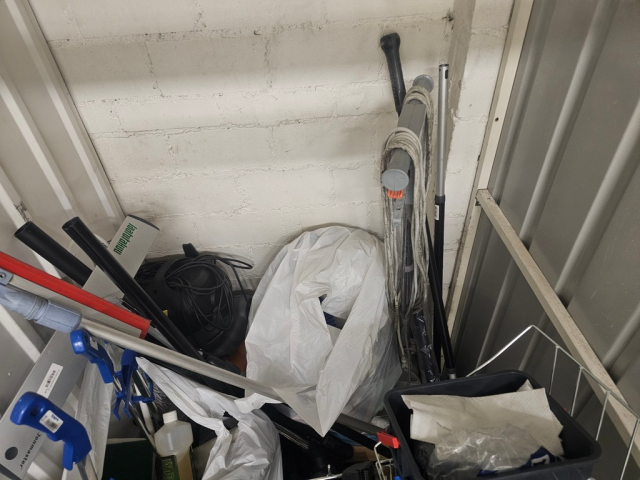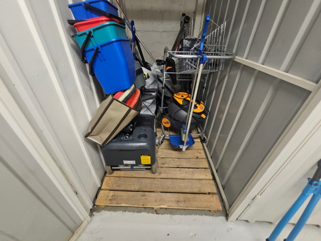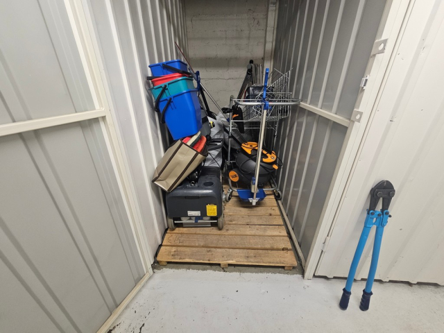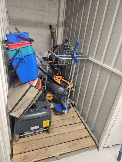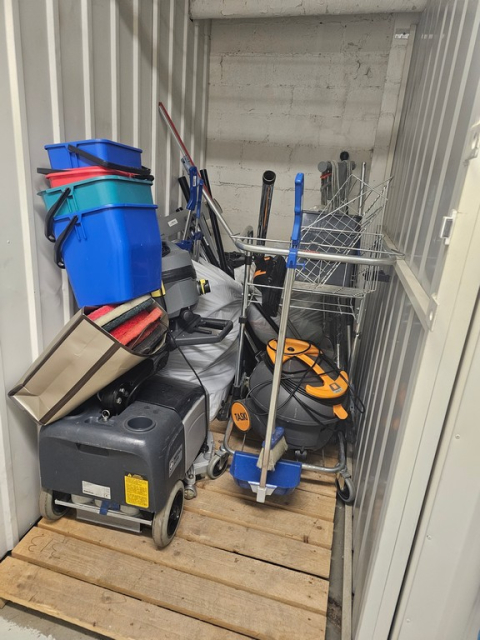 Myydään huutokaupalla kuvassa näkyvän varaston sisältö, vuokranantajan / haltijan lukuun.