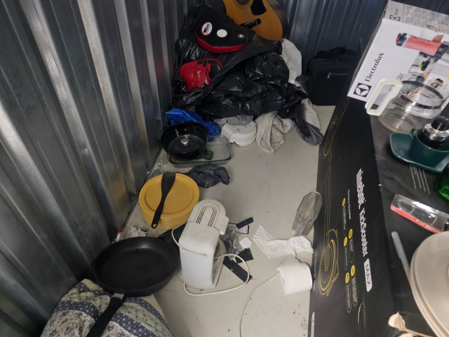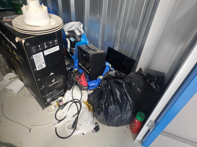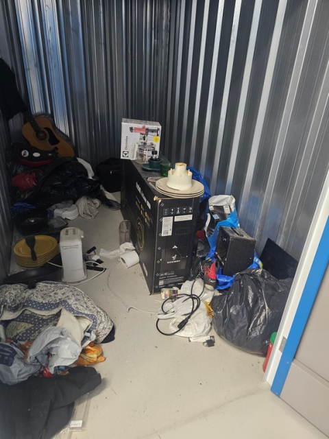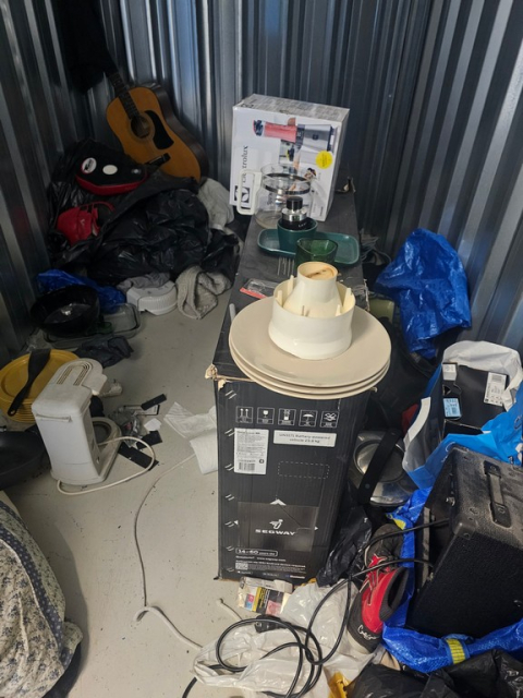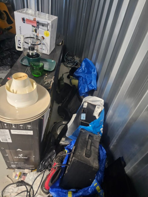 Myydään huutokaupalla kuvassa näkyvän varaston sisältö, vuokranantajan / haltijan lukuun.