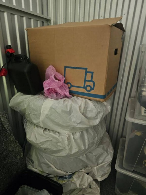 Myydään huutokaupalla kuvassa näkyvän varaston sisältö, vuokranantajan / haltijan lukuun.