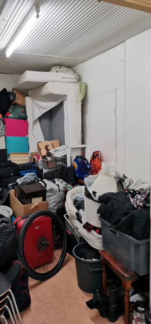 Myydään huutokaupalla kuvassa näkyvän varaston sisältö, vuokranantajan / haltijan lukuun.