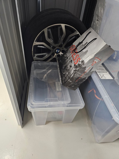 Myydään huutokaupalla kuvassa näkyvän varaston sisältö, vuokranantajan / haltijan lukuun.