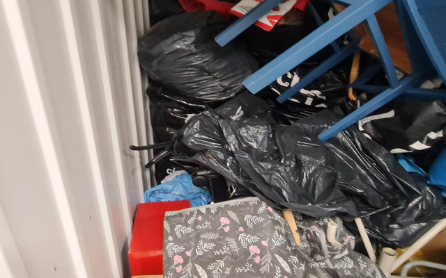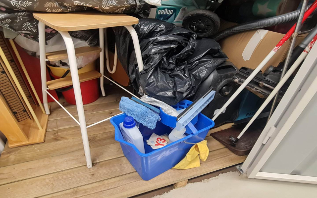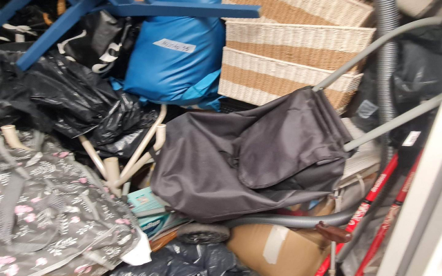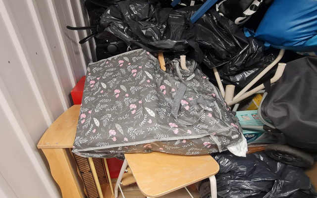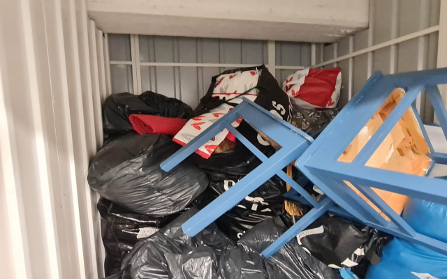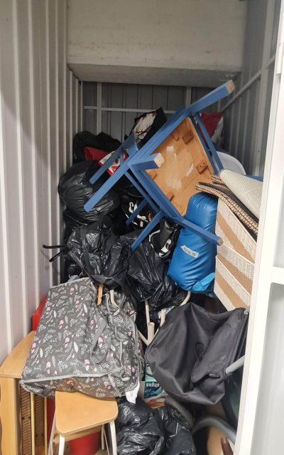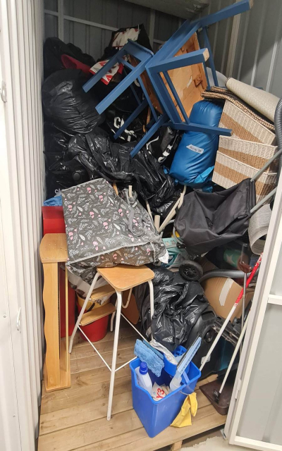 Myydään huutokaupalla kuvassa näkyvän varaston sisältö, vuokranantajan / haltijan lukuun.
