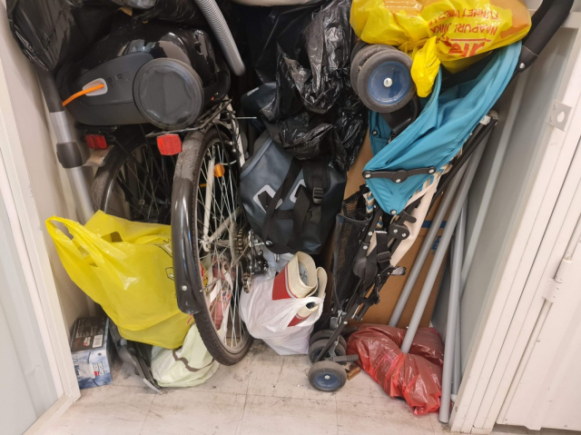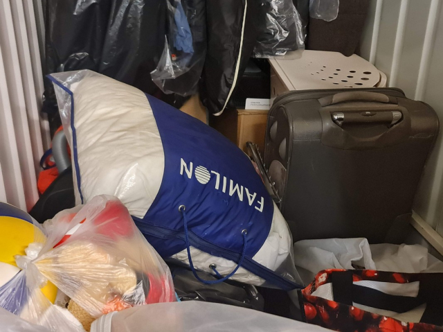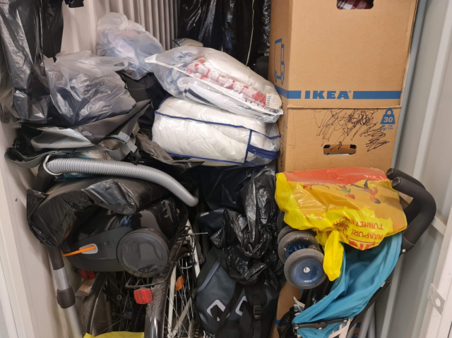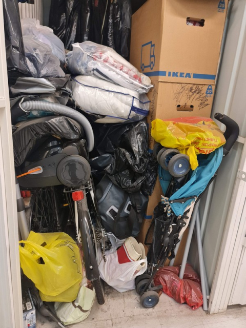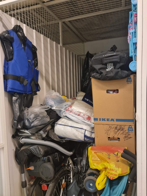 Myydään huutokaupalla kuvassa näkyvän varaston sisältö, vuokranantajan / haltijan lukuun.