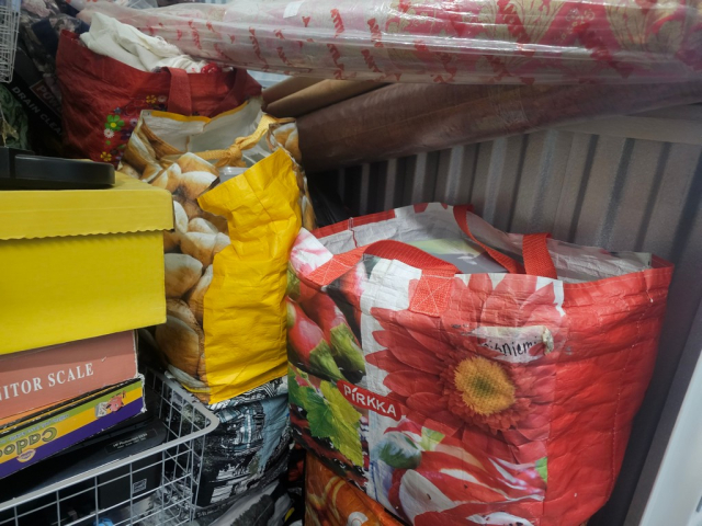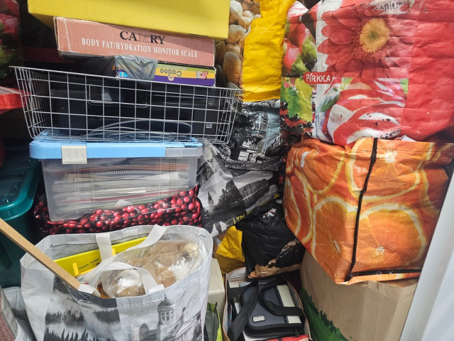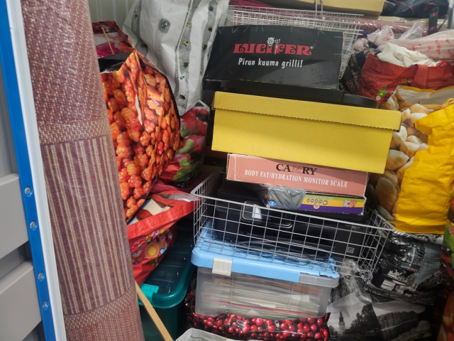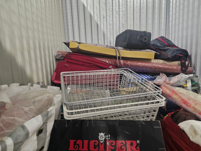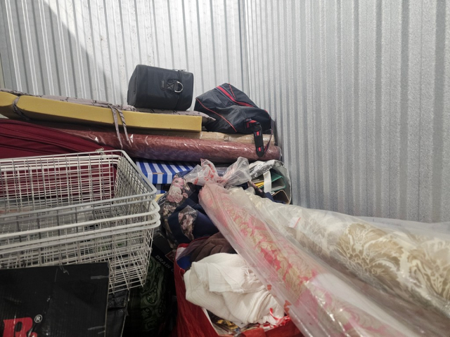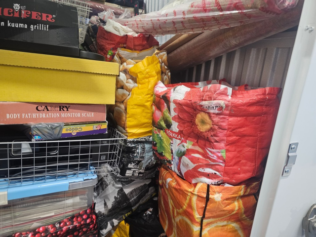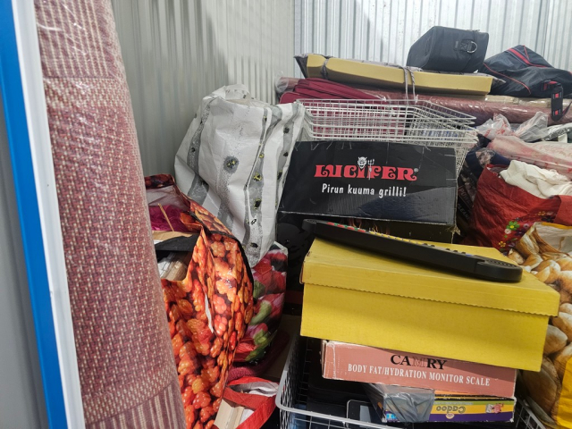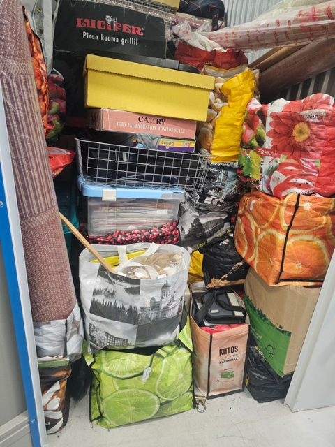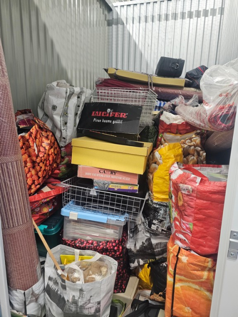 Myydään huutokaupalla kuvassa näkyvän varaston sisältö, vuokranantajan / haltijan lukuun.