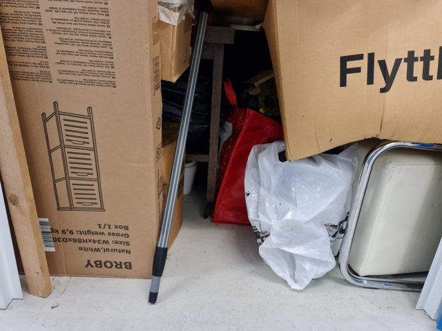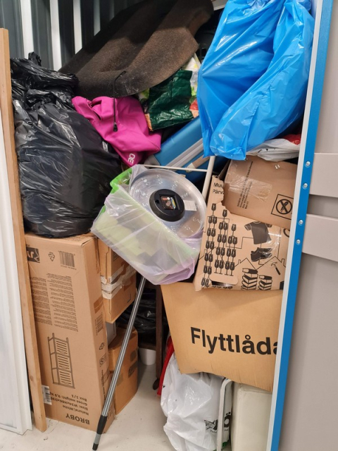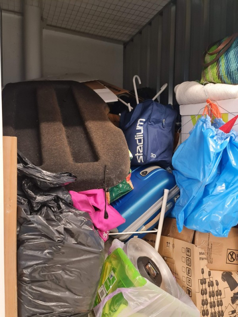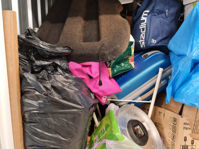 Myydään huutokaupalla kuvassa näkyvän varaston sisältö, vuokranantajan / haltijan lukuun.