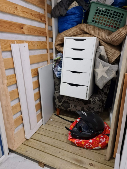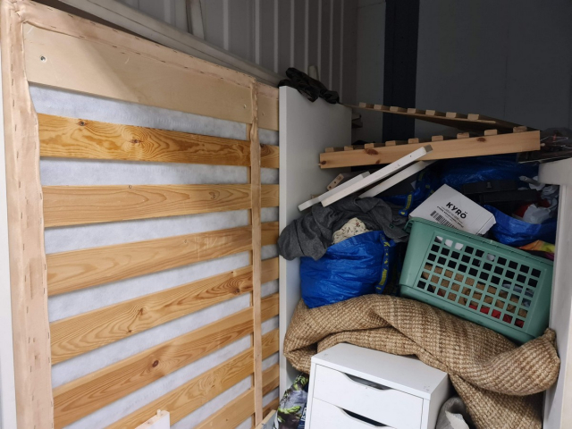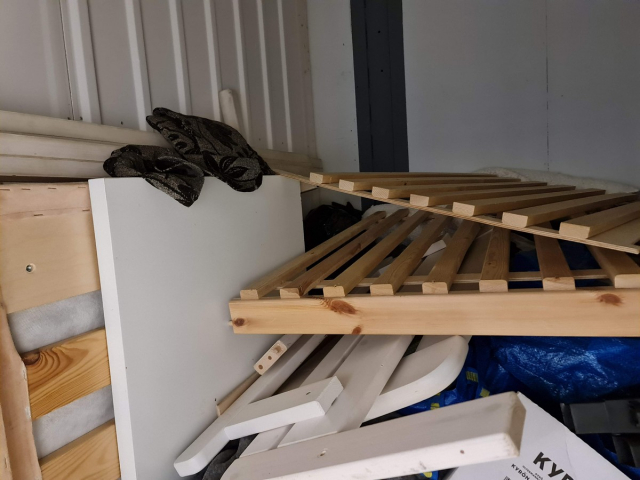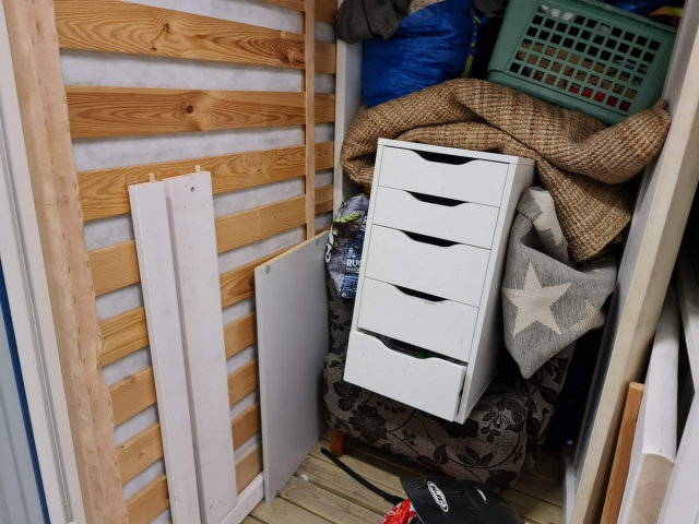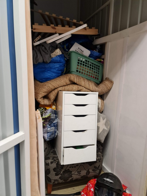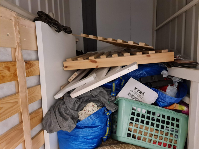 Myydään huutokaupalla kuvassa näkyvän varaston sisältö, vuokranantajan / haltijan lukuun.